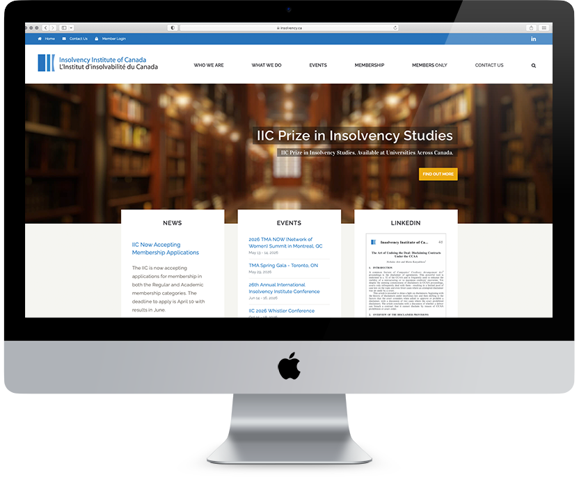 The Insolvency Institute of Canada (IIC) is Canada’s premier interdisciplinary forum for leadership and expertise in the field of commercial restructuring and insolvency.